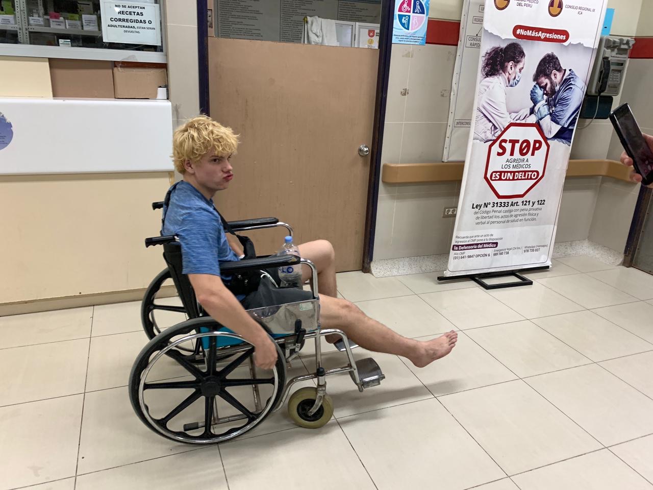 Unser vorletzter Stopp war dann an der Küste in Paracas, wo wir mit Leihfahrrädern ein nahegelegenes Reservat erkundeten. Dort widerfuhr mir ein unglücklicher Unfall, weshalb ich ins Krankenhaus nach Pisco musste. Es war schon relativ spät abends, und ich wartete einige Zeit auf meine Behandlung, weil der Doktor mit dem Opfer eines Attentats, das mehrere Schüsse in Kopf, Schulter und Hals erlitt, beschäftigt war. Letztendlich hatte ich einige Schürfwunden und einen stark geschwollenen Fuß, bei dem nicht festgestellt werden konnte, was genau vorlag, da kein MRT im Krankenhaus vorhanden war. Jedenfalls war es kein Bruch. Ich konnte dann mehrere Tage nicht auftreten und kann ihn bis heute nicht stark belasten.