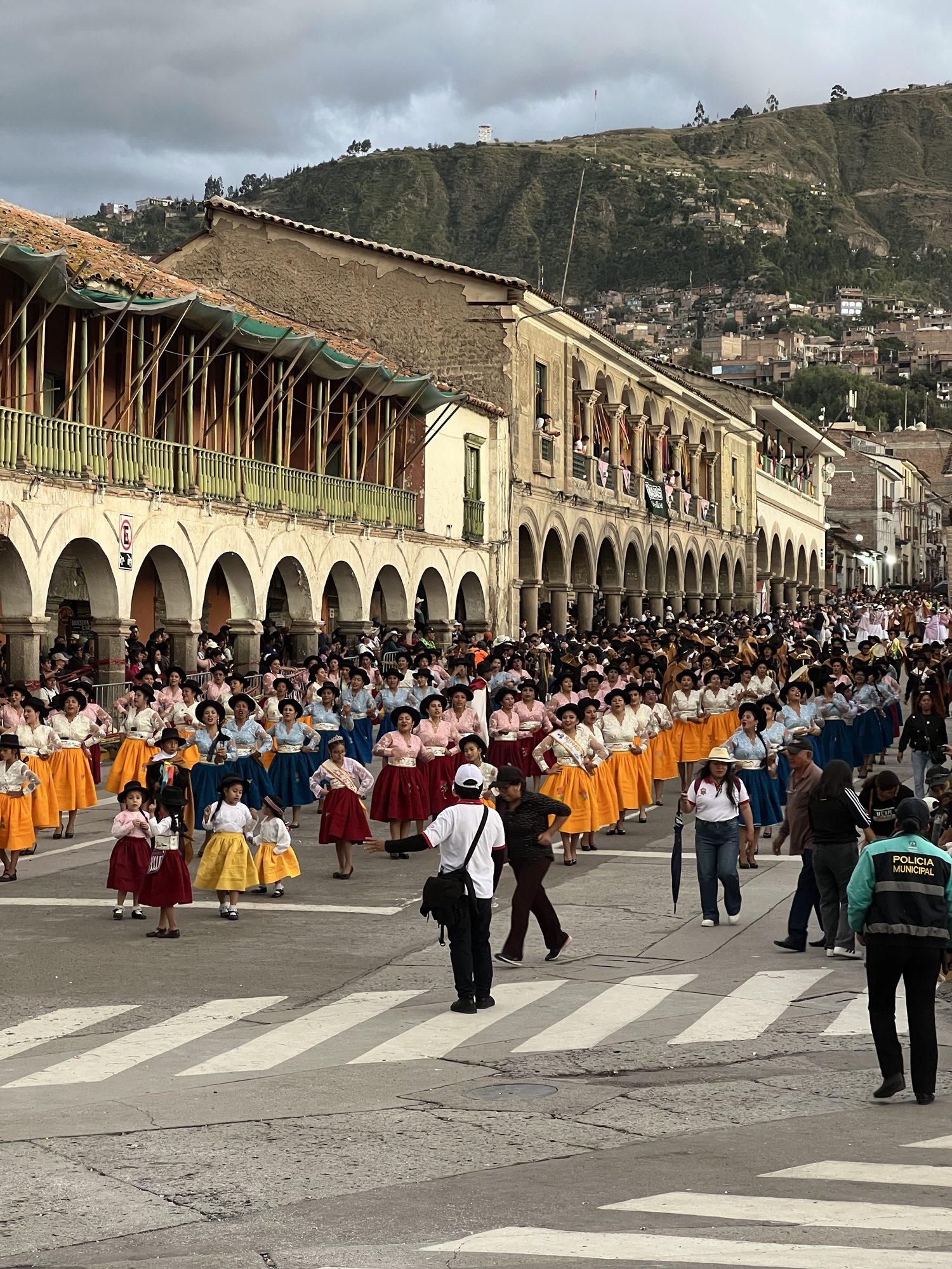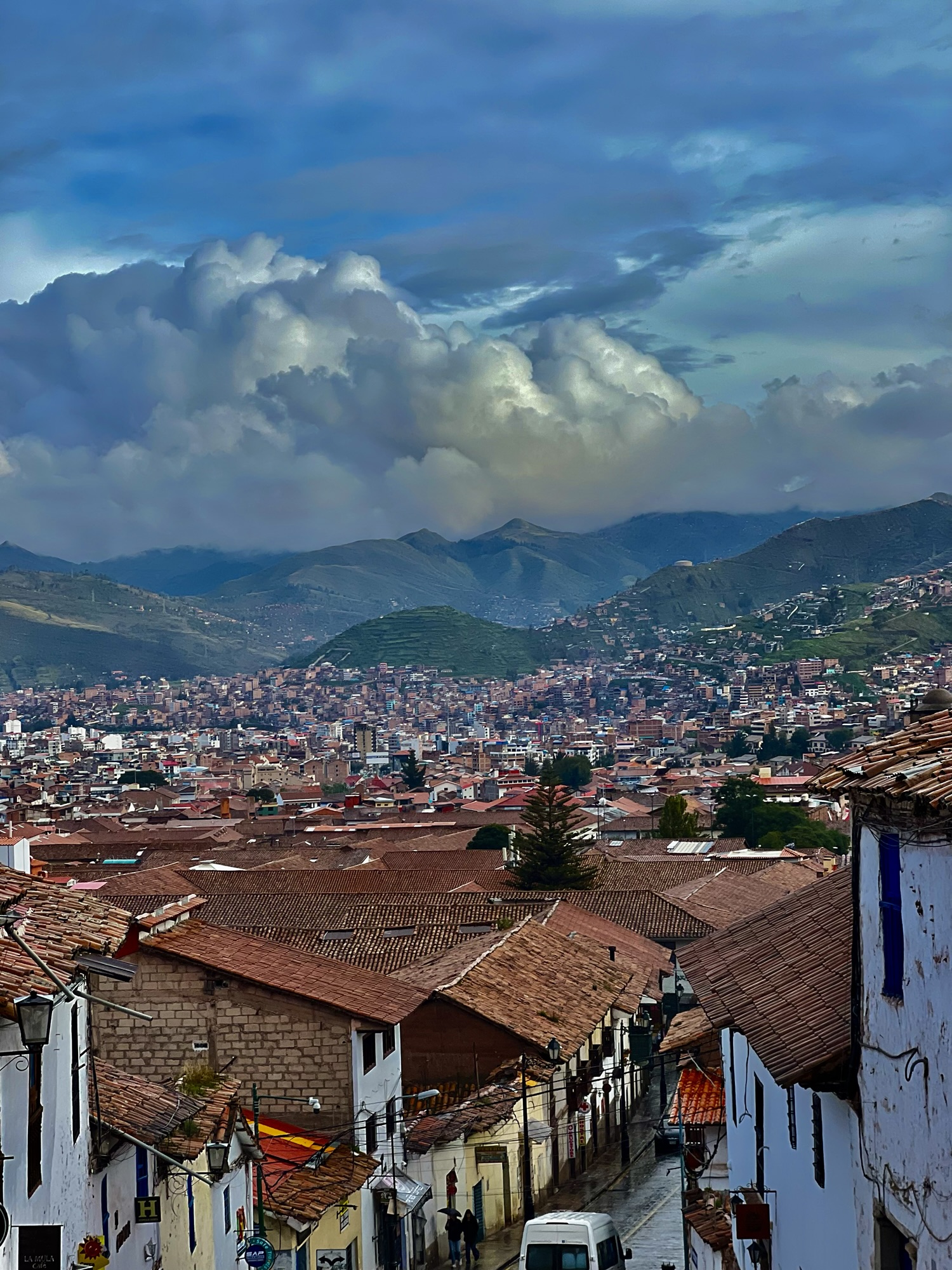 Nach drei Nächten lag die beschwerliche, 25-stündige Busfahrt in den Touristen-Hotspot Cusco vor uns. Wir hatten nur kurze Sachen an und fuhren zwischenzeitlich auf über 4000 m, weshalb es sehr kalt wurde. Die nie endenden Serpentinen lösten in mir ein starkes Übelkeitsgefühl aus, und andere im Bus mussten sich sogar übergeben. Trotz dieses eher weniger glimpflichen Starts war die Zeit für mich das Highlight der gesamten Reise. Dadurch, dass wir in Hostels übernachteten, hatten wir das erste Mal wieder so richtig Kontakt mit Nicht-Peruanern, was eine tolle Abwechslung war, besonders das Englischsprechen. Wir suchten stets nach den billigsten Angeboten und landeten schließlich in einem Party-Hostel, wo wir die ersten Nächte nicht viel Schlaf fanden. Völlig übermüdet traten wir dann die Tour zu den Montañas de Colores an. Es war eine beeindruckende Aussicht, und ich bestieg das erste Mal in meinem Leben einen 5000er. Allerdings hatte mich das alles und zusätzlich die Höhe Cuscos (3400 m) schon sehr mitgenommen, weshalb ich am nächsten Tag, als eigentlich um 4:30 Uhr unsere Salkantay-Tour hätte beginnen sollen, mit sehr hohem Fieber und anderen Erkältungssymptomen aufwachte und deshalb nicht mitkonnte. Der Salkantay-Trek ist eine sehr teure, viertägige, anspruchsvolle Wanderung zum Machu Picchu. Dass ich das Geld nicht erstattet bekam und dieses Highlight Perus verpasste, ärgerte mich sehr. Doch es half ja alles nichts, und letztendlich konnte ich mit Hilfe von Antibiotikum und Ibuprofen wenigstens noch Machu Picchu sehen, was atemberaubend war.
